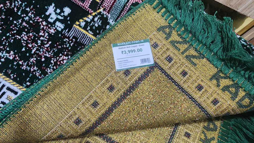 Experience the elegance and spiritual beauty of this premium Makkah wall carpet from Makkahlooms.in. Meticulously crafted in Turkey with luscious green velvet, this tapestry showcases a traditional Islamic design that enhances any living space or prayer area. Whether hung directly on the wall or framed, it brings a touch of sacred art and timeless craftsmanship to your home décor.